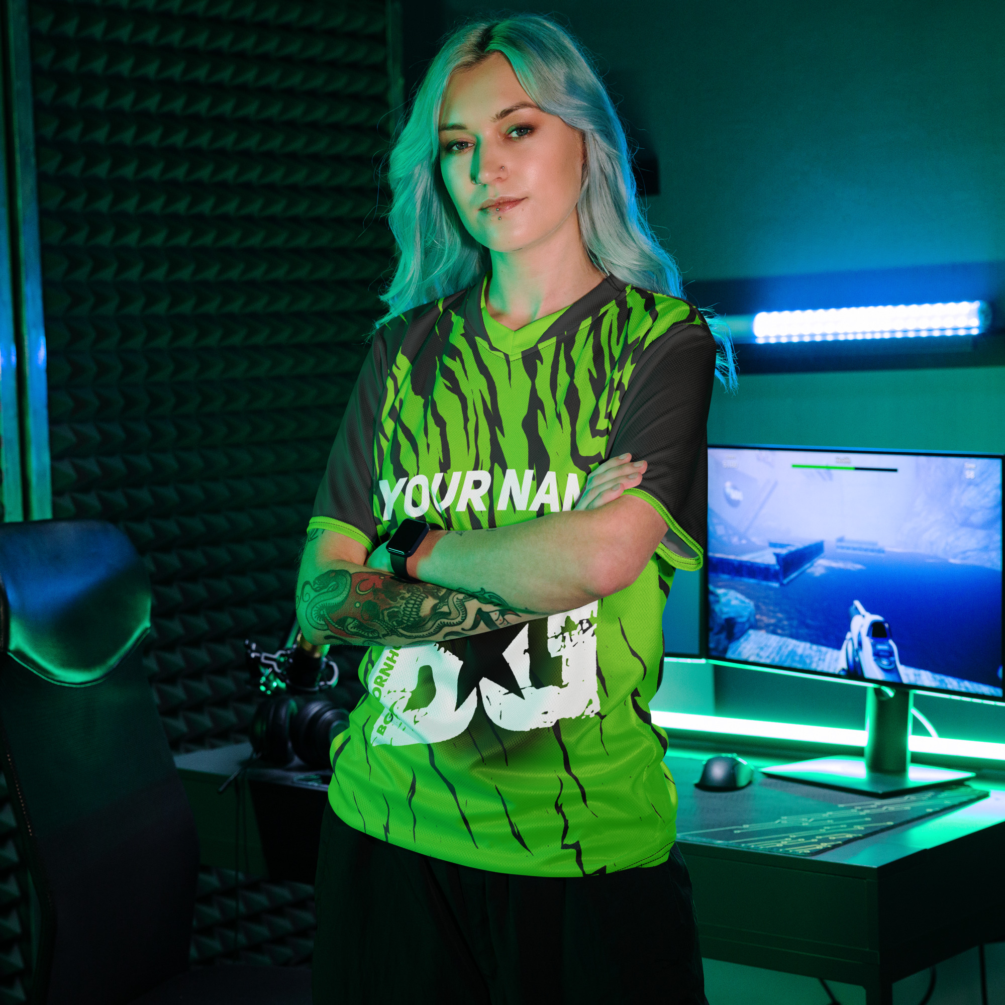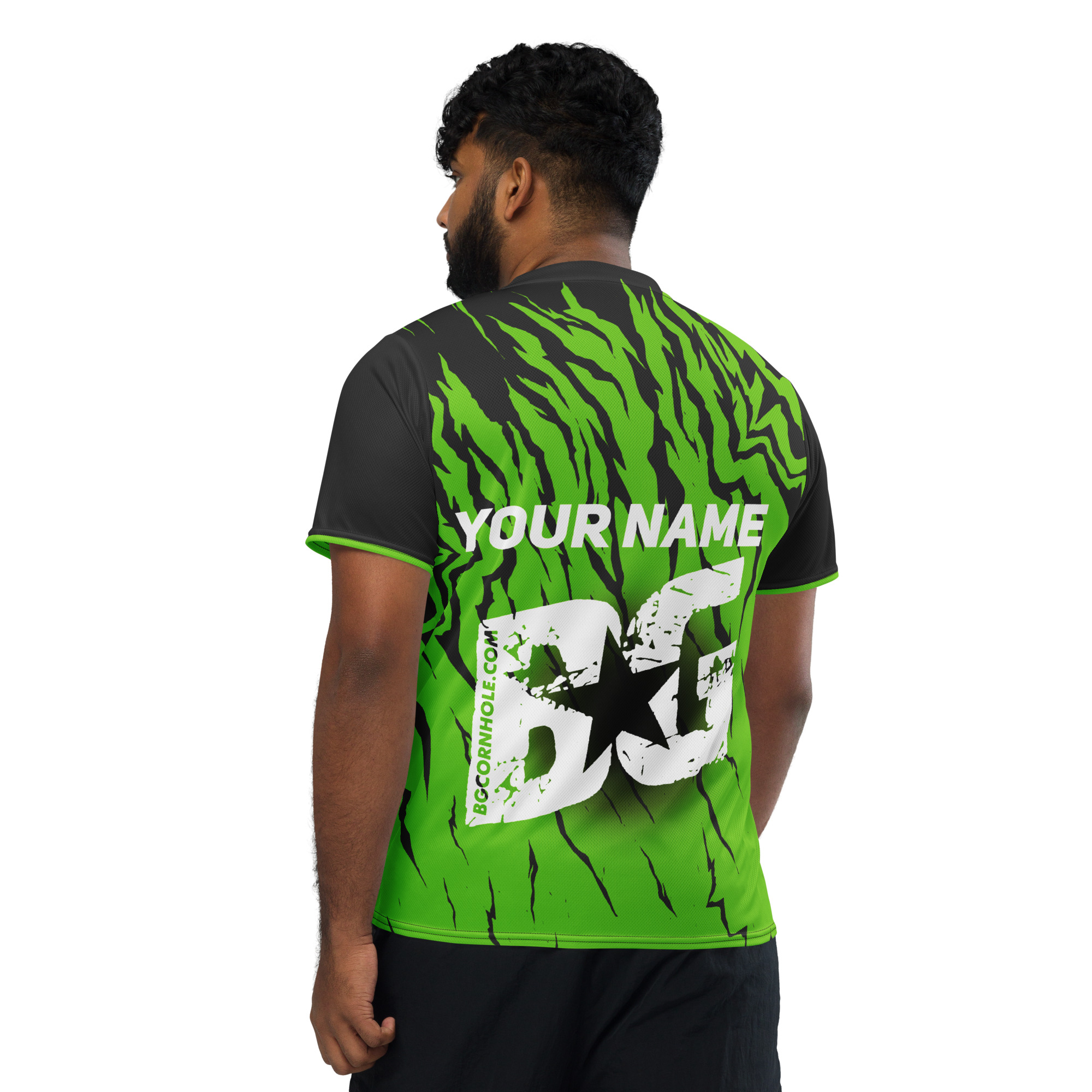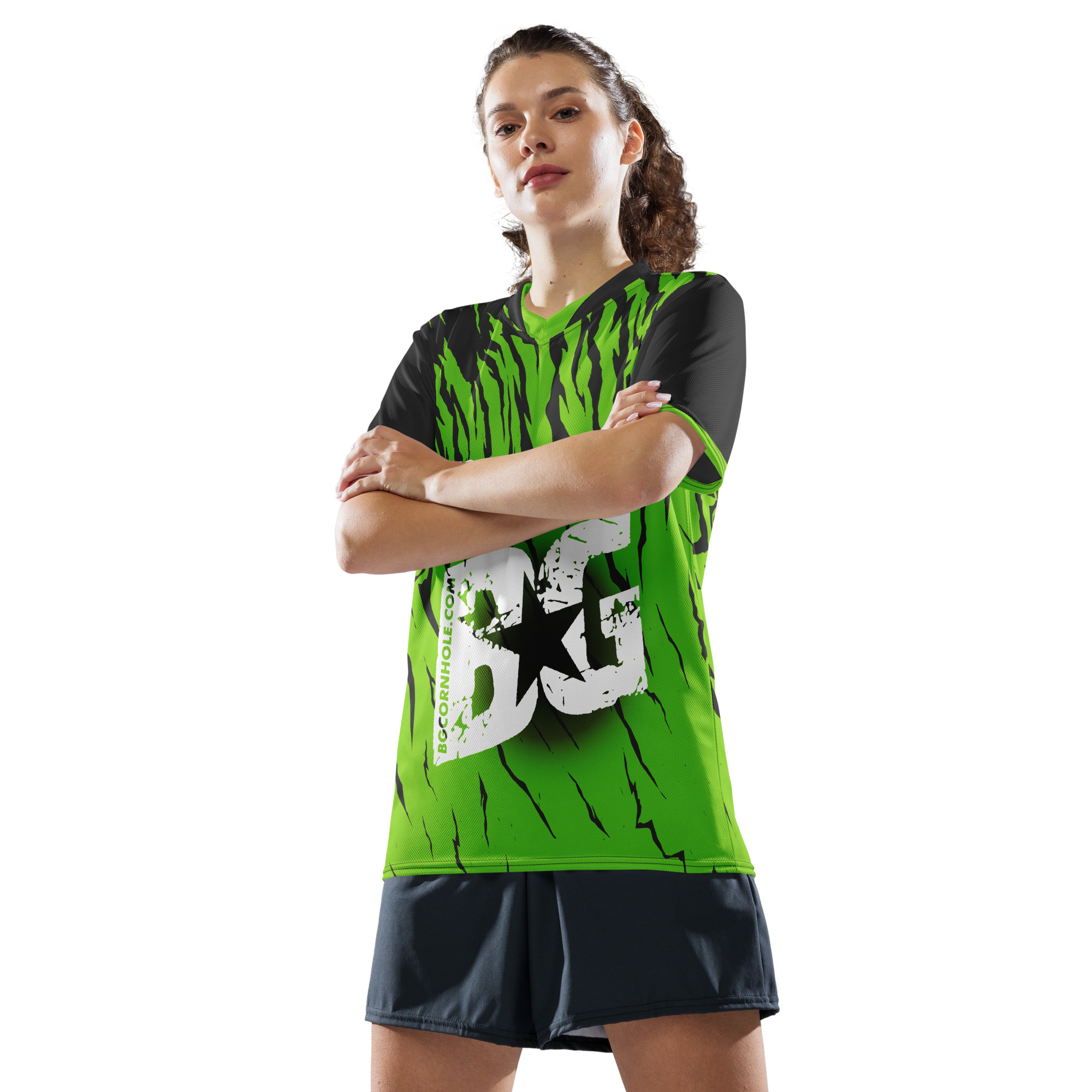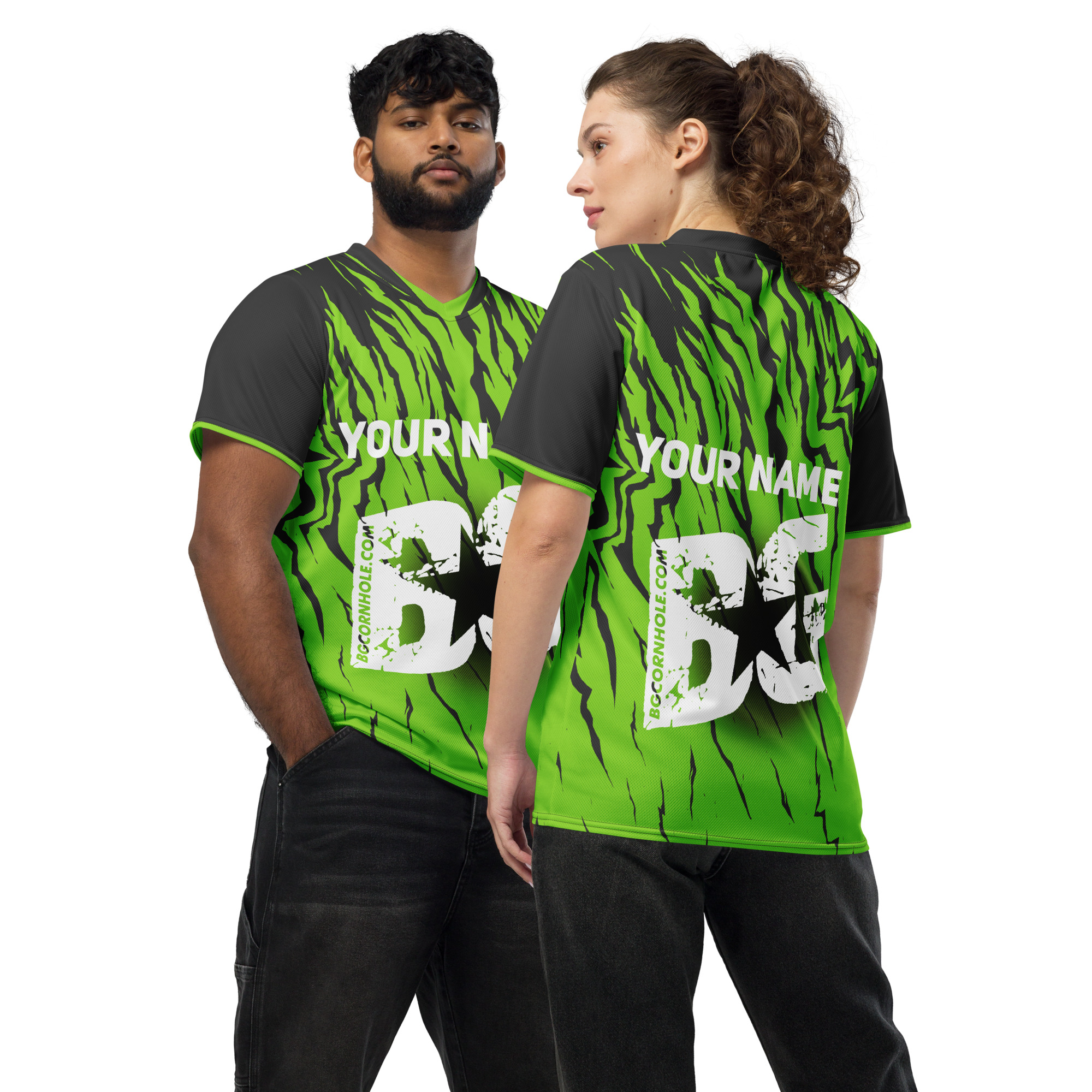 Looking for the perfect sports jersey? We have you covered—made of 100% recycled polyester fabric, this shirt is breathable, moisture-wicking, and has a double-layered V-neck collar that creates a premium look.